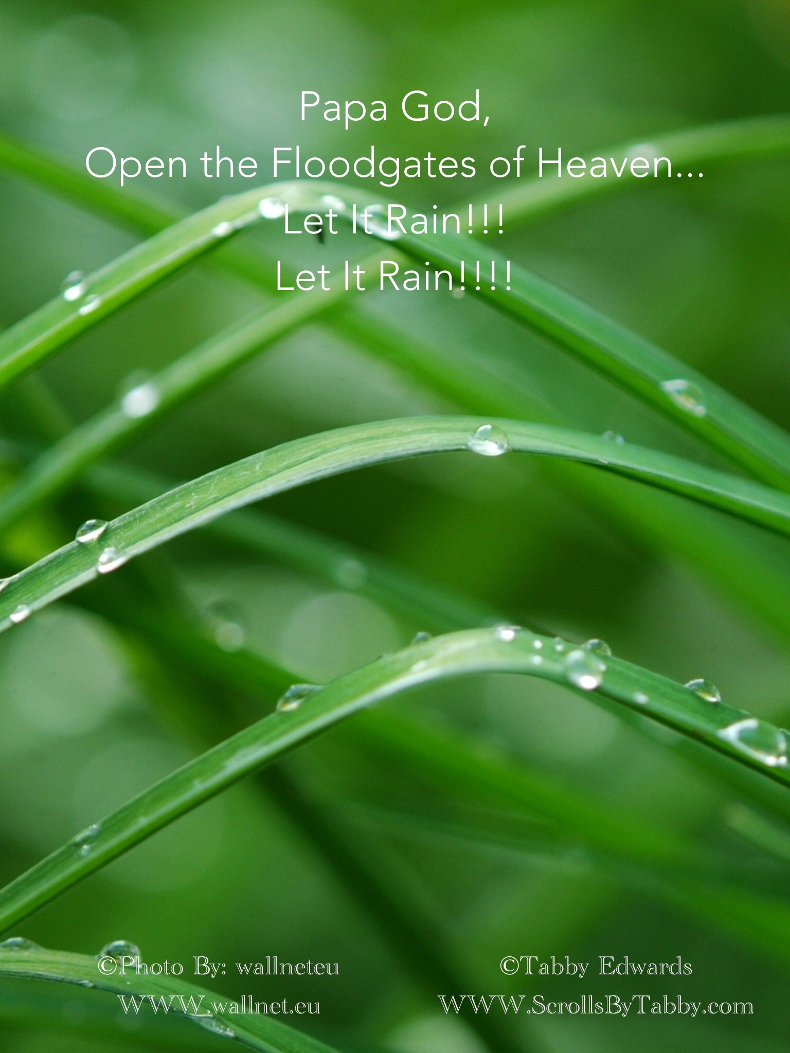 Let It Rain Papa God, bring Your Holy Spirit! Flood this place with your Presence! Share this: Click to share on Facebook (Opens in new window) Facebook Click to share on X (Opens in new window) X Click to share on Tumblr (Opens in new window) Tumblr More Click to share on Pinterest (Opens in new window) Pinterest Like Loading...